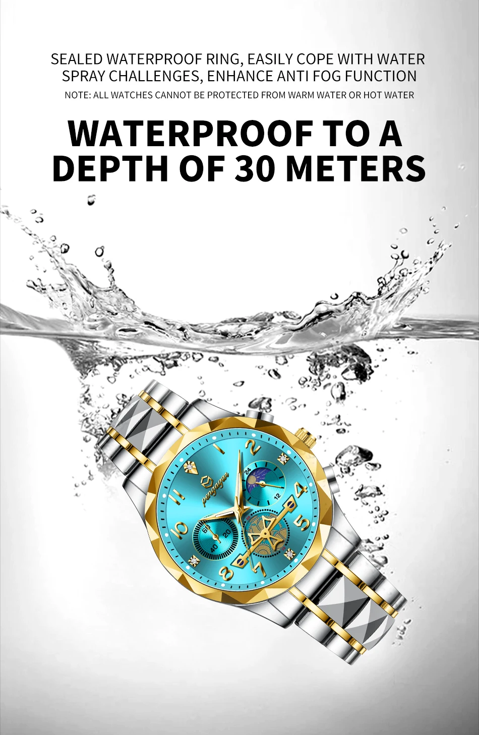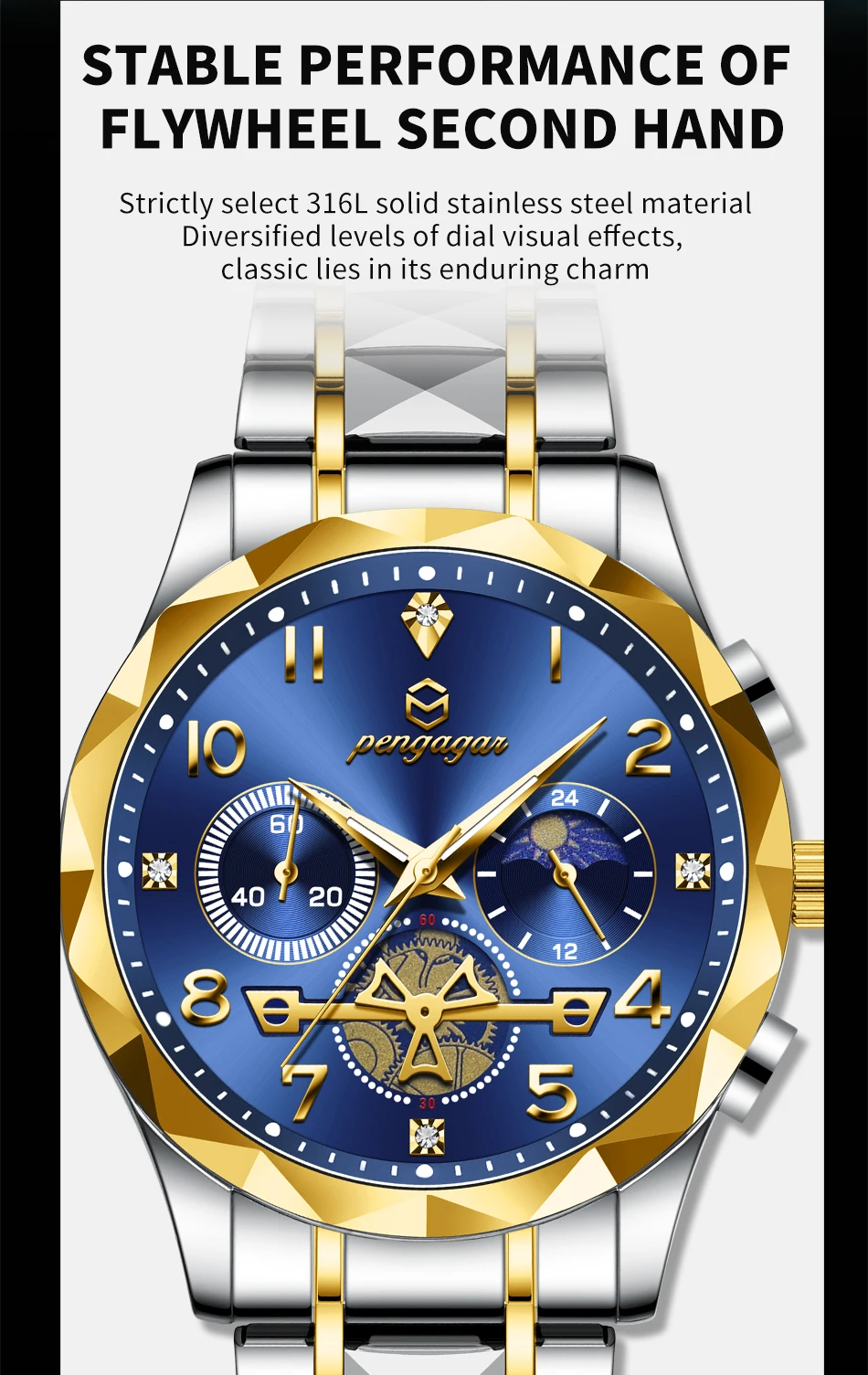 Feature: Luminous,Auto Date,Chronograph,Complete Calendar,Moon Phase,Perpetual Calendar,Water-Resistance,swim,Week Display,Luminous Hands