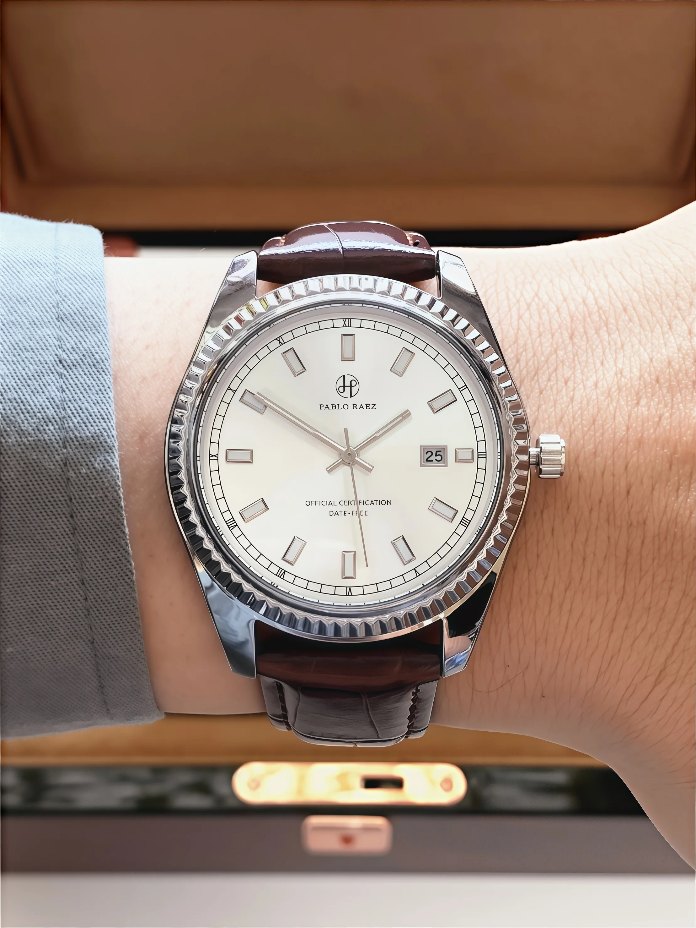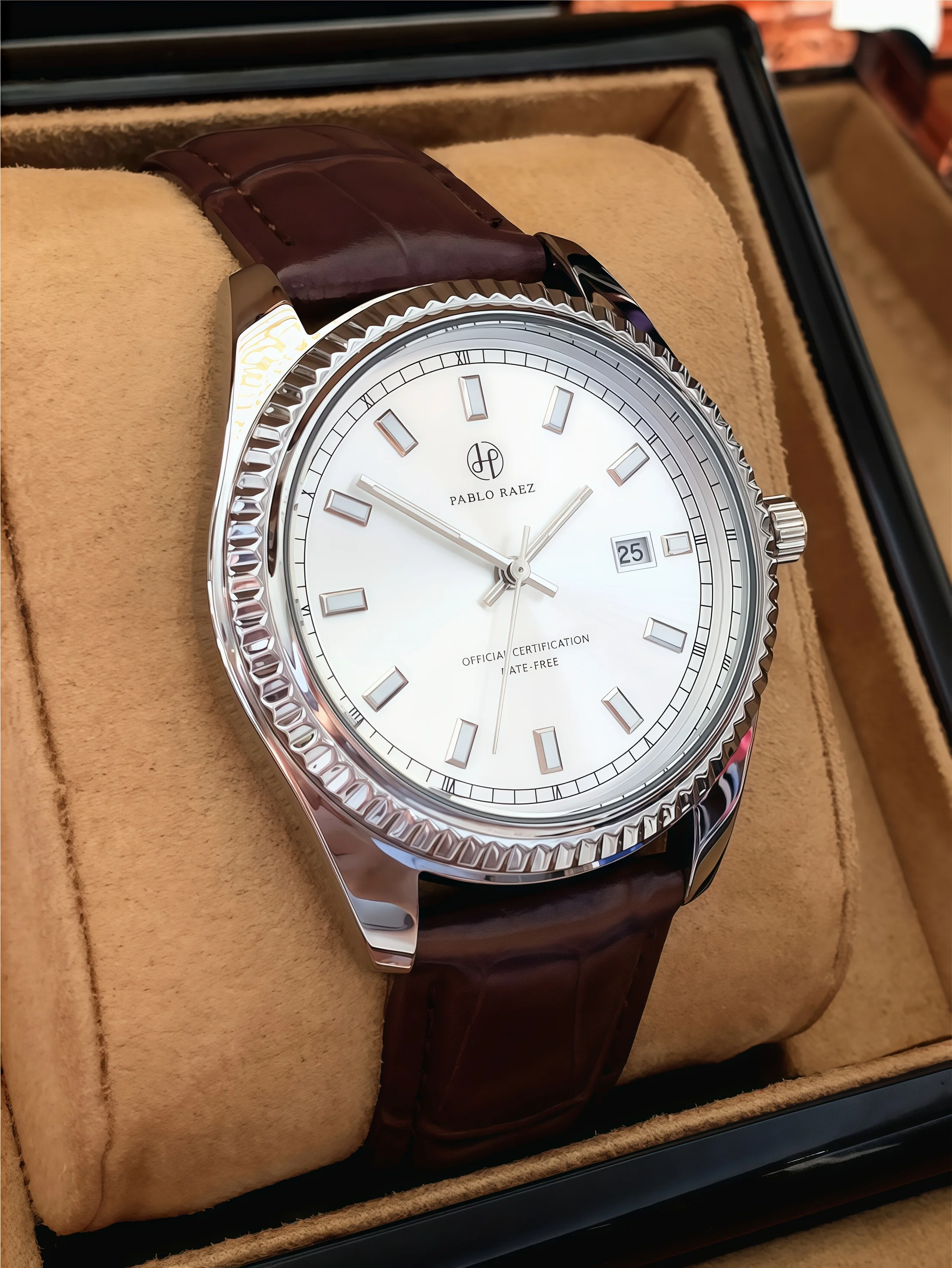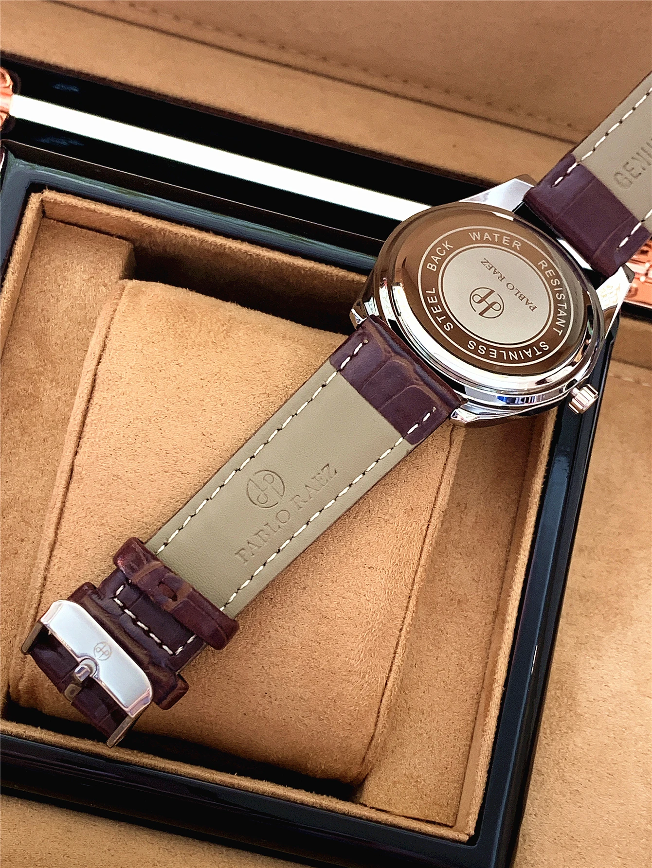 Enjoy comfort and durability with the leather band, crafted for both style and longevity.