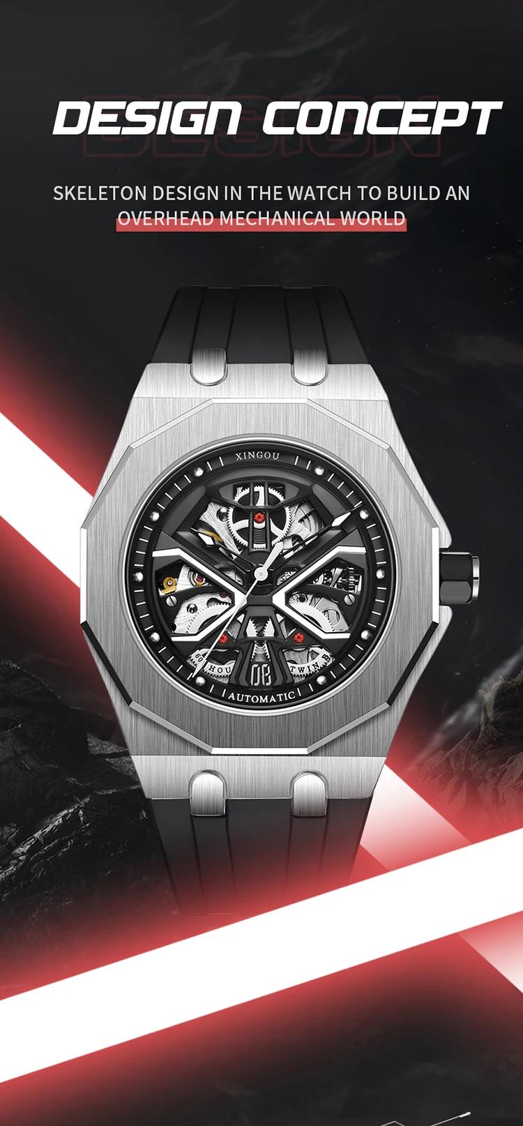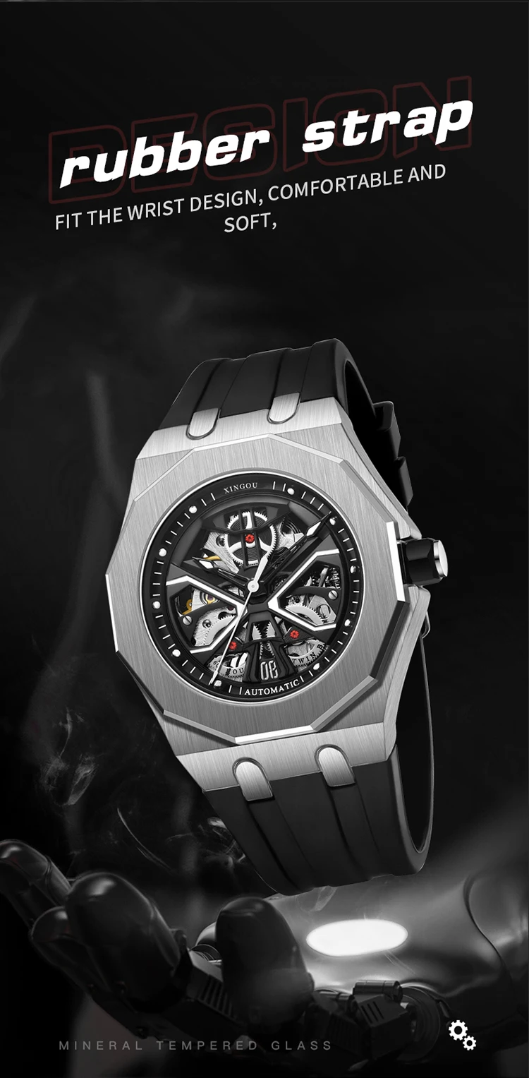 Relojes Hombre Rubber Automatic Watch Bands Self Winding Luxury Watches Men Style Design Dial Mechanical Watches for Men