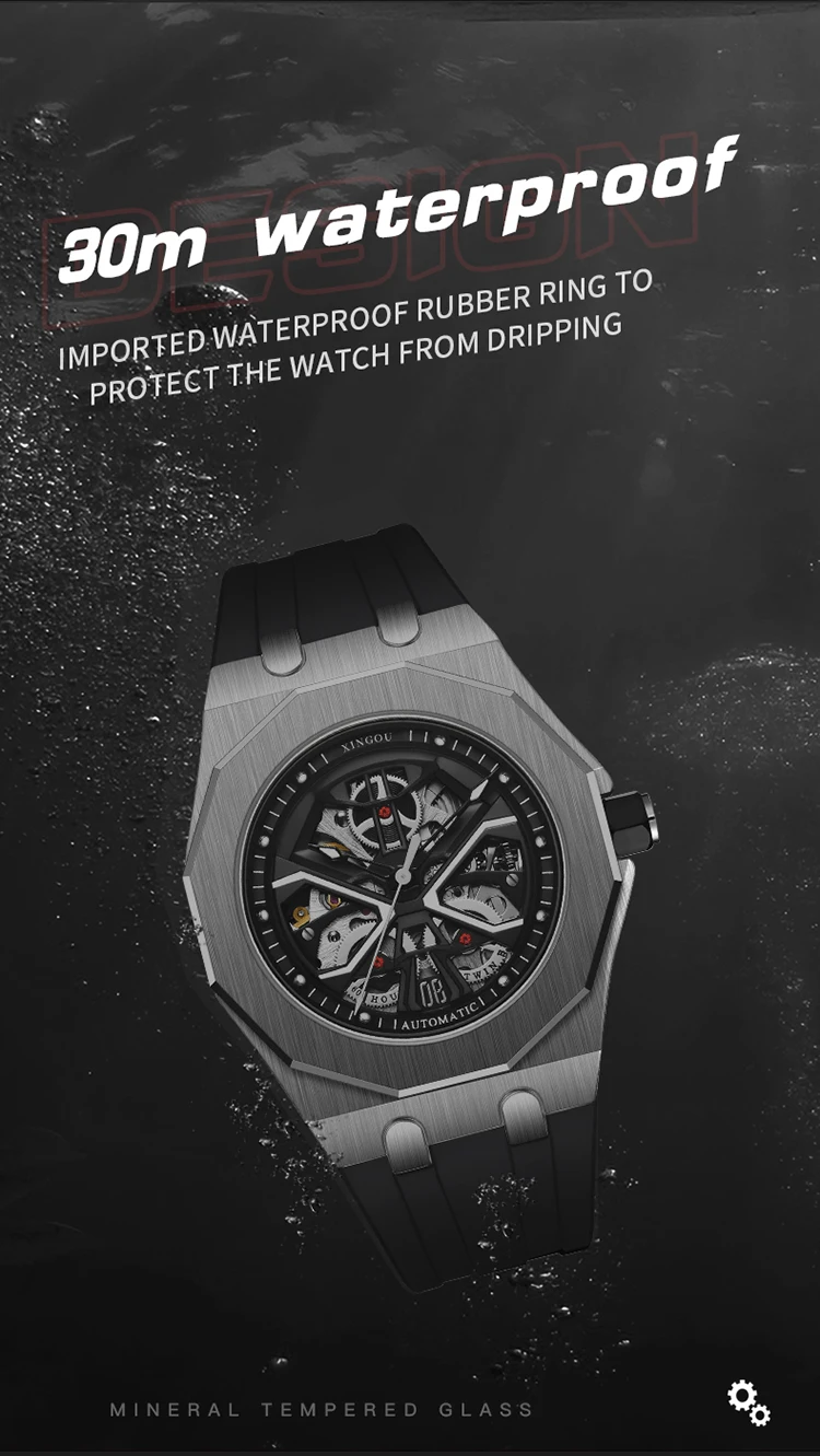 Feature: Auto Date,Day/Date,Power Reserve,Water Resistant,Waterproof,Luminous,Luminous Hands,hollow out